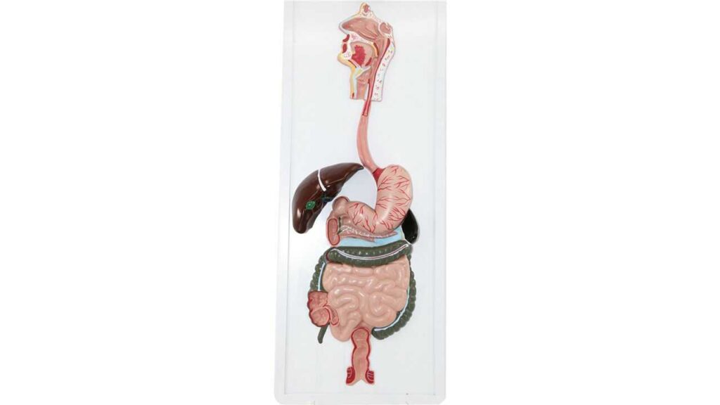✔️ המחשה תלת-ממדית מפורטת וברורה של איברי מערכת העיכול.