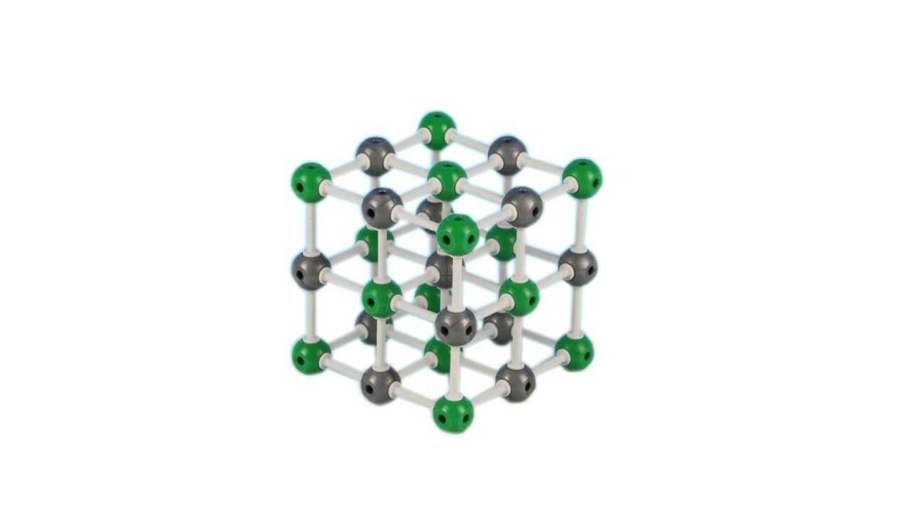 ✔️ המחשה תלת-ממדית מדויקת של מבנה גביש נתרן כלורי.